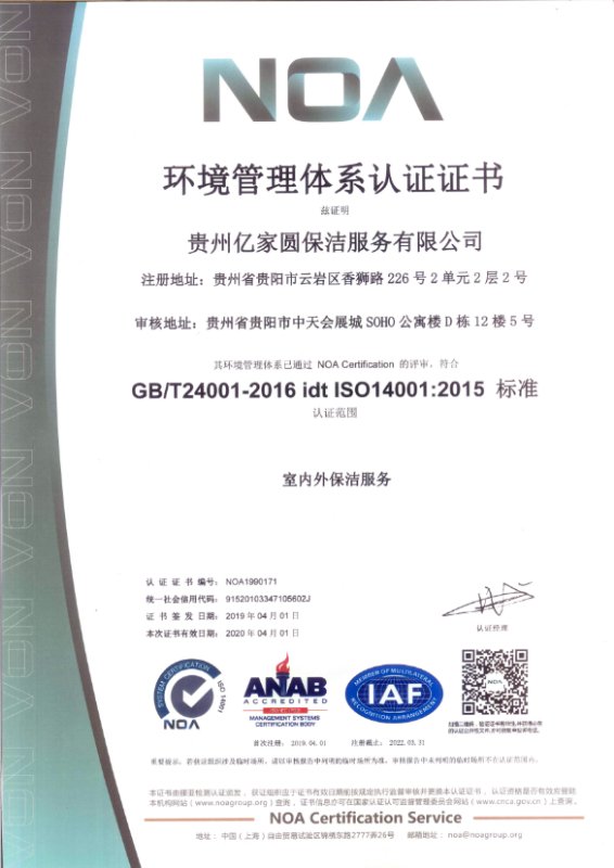 環境管理體系認證證書